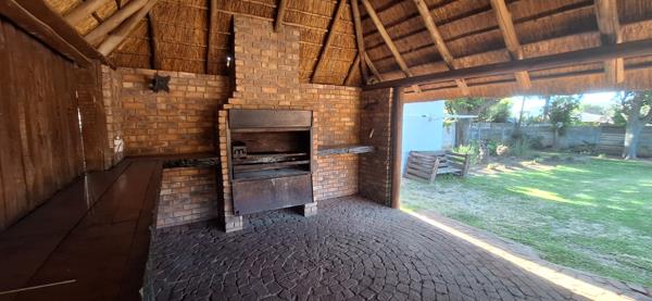 Thatched entertainment lapa with built-in braai perfect for gatherings