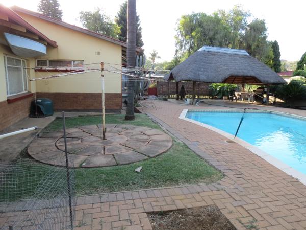 Exclusive sole mandate! This well maintained family home is situated on a large 1001 sqm stand in a quiet street with a strong borehole. The property is within walking distance of a number of excellent primary and secondary schools. Entertain family and friends in the thatched lapa with braai overlooking the sparkling swimming pool- ideal for the entertainer. The staff accommodation and bathroom have the potential to be converted into a flat for extra income. Building plans are available.