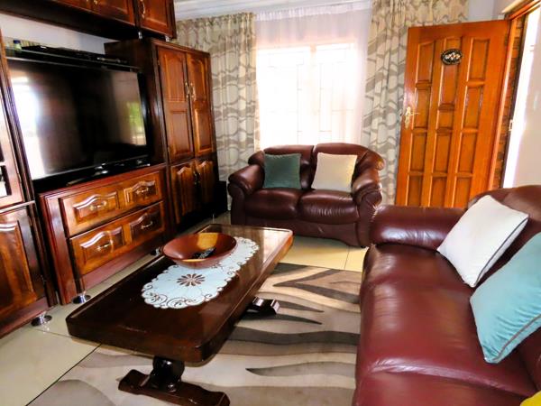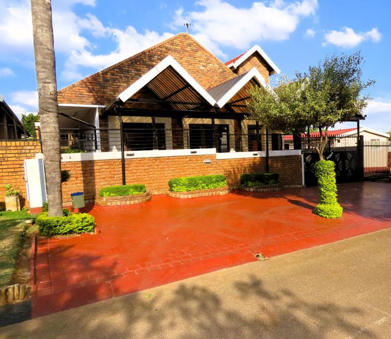 This distinguished face brick residence, situated in Eersterust, Pretoria, presents a commanding street presence with its unique multi-gabled covered entrance and robust security infrastructure. An ornate black metal remote controlled gate, complemented by palisade fencing, burglar bars, and an ADT alarm system, ensures comprehensive peace of mind. The property features a distinctive red paved driveway, offering ample parking and leading to a four vehicle tandem remote controlled garage, alongside an additional parking bay.