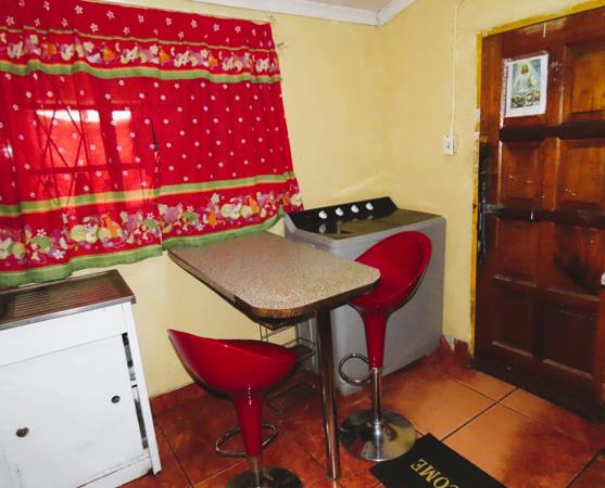 The interior welcomes you with a cozy lounge, characterized by warm yellow walls and durable tiled flooring. The kitchen, though compact, boasts cabinet storage and a practical stainless steel sink, catering to daily needs. A dedicated laundry area adds to the home''s convenience. There is also a prepaid meter to manage and control your electrical usage.