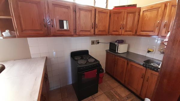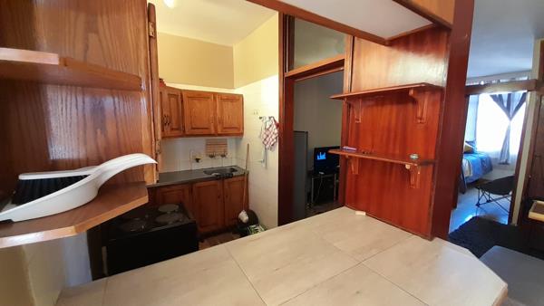 The property is situated on the 1st floor and features a open plan living area with built in cupboards. The kitchen is well designed with wooden cupboards and ample counter tops. as well as a breakfast nook to enjoy a quick snack. The bedroom is light and airy with a large window. The bathroom consists of a shower, basin and toilet. This apartment has a undercover parking space inside the complex for safety.