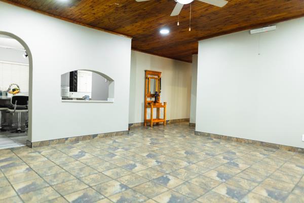 The living areas are designed for both relaxation and entertainment. A large open-plan lounge flows seamlessly into an indoor entertainment space, complete with a built-in bar. The modern kitchen boasts an abundance of built-in cupboards, a breakfast nook for casual dining, and a spacious laundry room with additional cabinetry for all your storage needs. The outdoor area is just as impressive, featuring a built-in braai, a sparkling swimming pool, a beautifully landscaped mini-golf area, and a tranquil fountain, making this the ideal setting for hosting birthdays, work functions, and family gatherings.