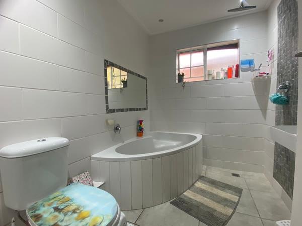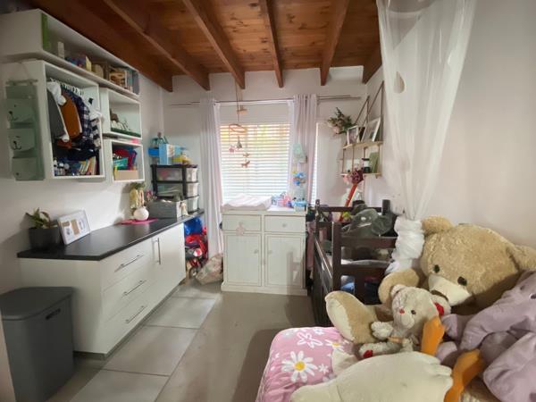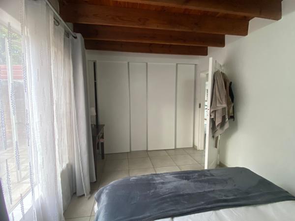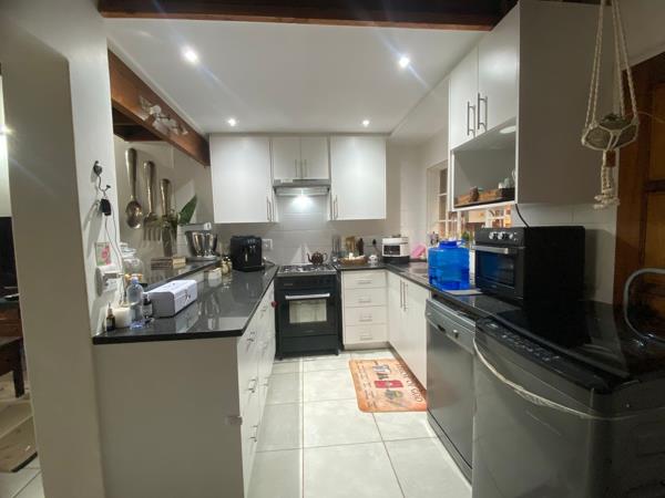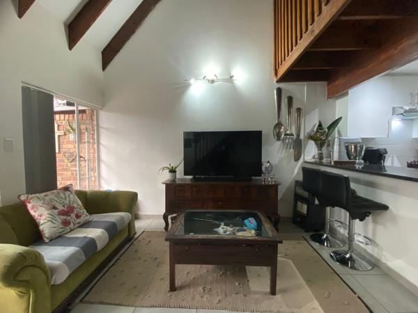 The heart of the home is the open-plan lounge and kitchen, complete with granite countertops, a gas stove, and a breakfast counter perfect for everyday meals and entertaining. Step outside to the patio with a louvre awning and built-in braai, overlooking a garden ready to be refreshed into your own private retreat.