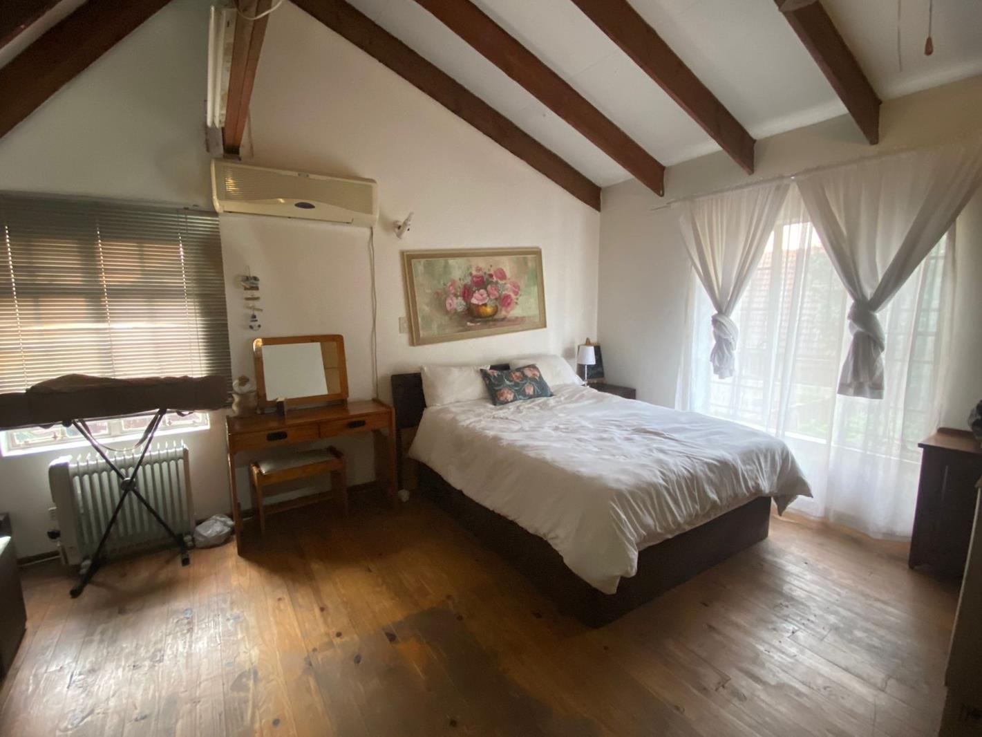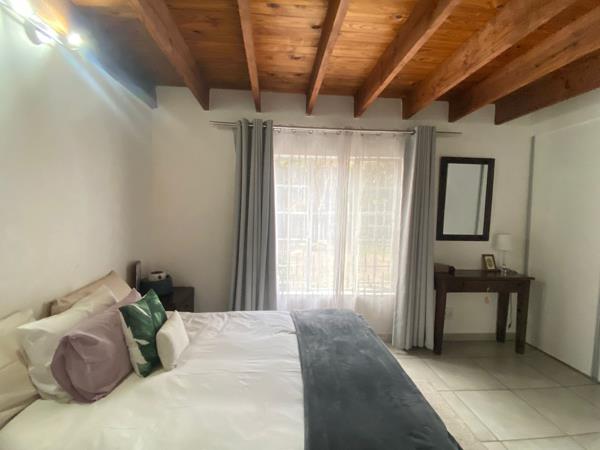 Upstairs, the main bedroom is a true standout with wooden floors, air conditioning, exposed beams, and a stunning double-volume ceiling that adds both charm and space.