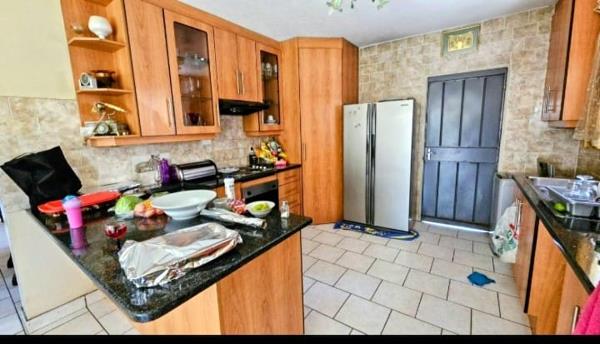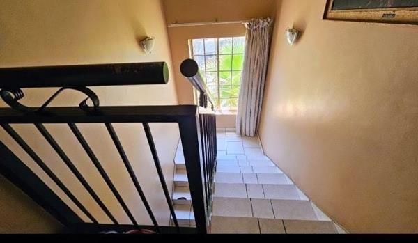 Upstairs, youll find three generously sized bedrooms, each with built-in cupboards. The master suite features ample cupboard space and a luxurious full en-suite bathroom, while the remaining two bedrooms share a neatly designed en-suite bathroom off the passage. Additional highlights include a large double garage, extra open parking, a well-sized garden, and pre-paid electricity for hassle-free living.