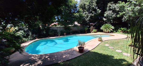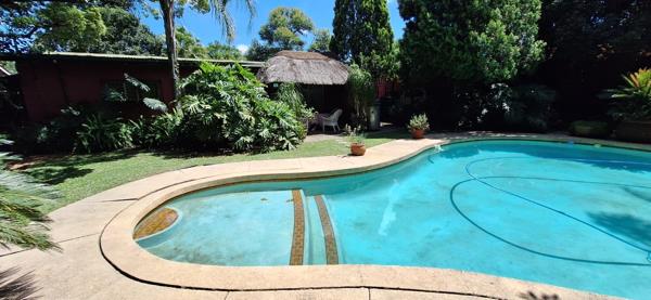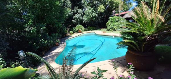 Outdoor living is a highlight, with two entertainment areas, a beautiful blue swimming pool, and a lush, well-established garden, perfect for relaxing or entertaining guests.