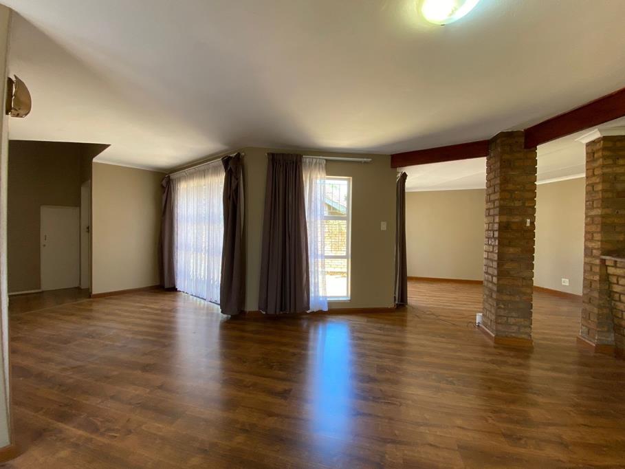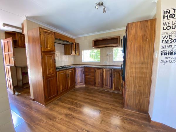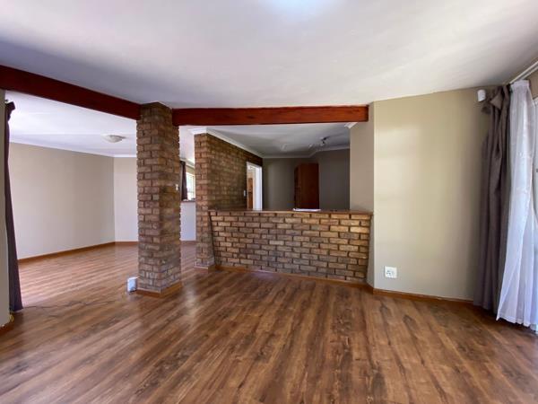 The home features a well-fitted kitchen with wooden cupboards, complemented by a separate scullery and laundry, opening seamlessly to the living areas. Enjoy two spacious lounges and a dining area, ideal for comfortable family living and entertaining. A patio extends the living space, perfect for relaxed outdoor moments.