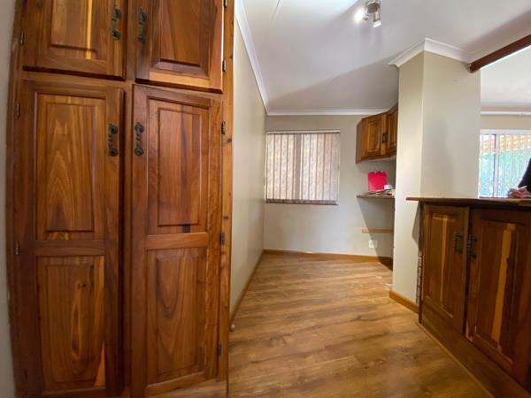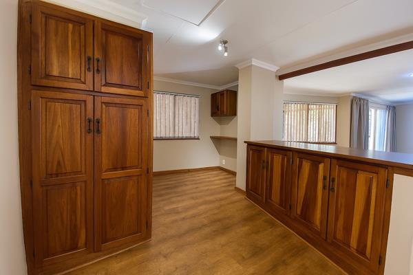 The house offers three spacious bedrooms with ample built-in cupboards and two beautifully fitted bathrooms, with the main bedroom en suite featuring double basins.