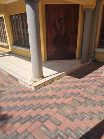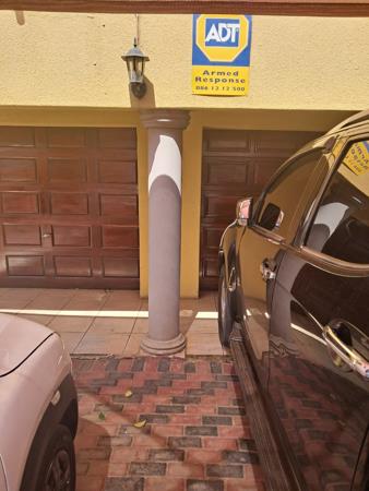 Discover this inviting 5-bedroom, 2-bathroom family home nestled in the vibrant suburban setting of Mamelodi Sun Valley, Pretoria. The property boasts excellent kerb appeal with its lush green lawn, established garden beds, and a striking vibrant yellow facade. A paved brick pathway leads to an ornate wooden main door, flanked by decorative columns, creating a welcoming entrance. Enhanced security is provided by an automated sliding gate and electric fencing.