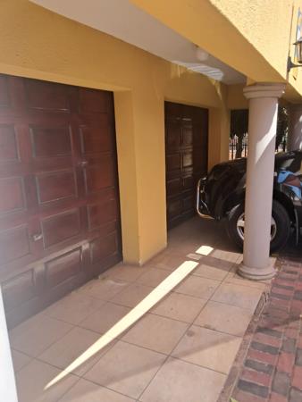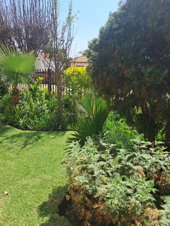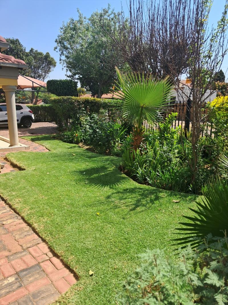 The outdoor spaces are equally impressive, set on a 444 sqm erf. Enjoy the meticulously maintained garden with its diverse plants and mature trees. Paved walkways connect various areas, including a charming tiled verandah, ideal for outdoor enjoyment. The property boasts a built-in braai for entertaining, three garages for secure vehicle storage, and additional parking space for up to four vehicles, ensuring convenience. Pets are welcome, adding to the family-friendly appeal.