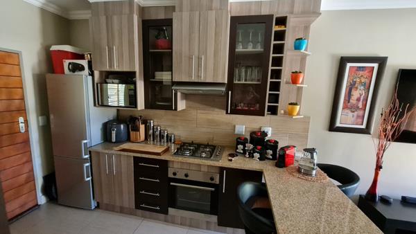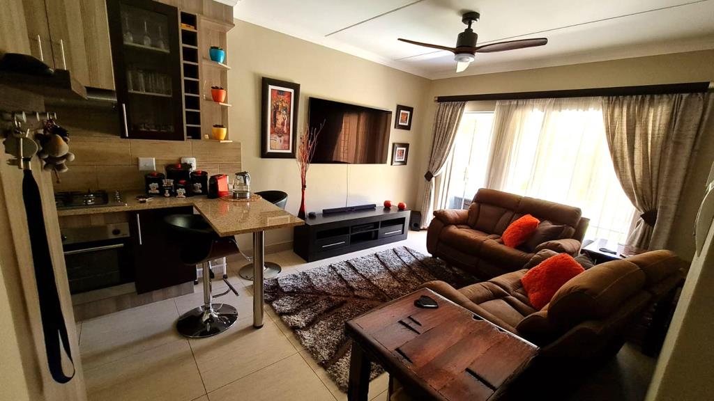 Safety and comfort on the ground floor! You will feel right at home. Spacious two-bedroom with built-in cupboards unit on the ground floor with a garden and closed off entertainment area with a built-in braai. Beautiful open plan living room, dining room and kitchen with many built-in cupboards and modern finishes. The full bathroom is also modern and consists of a shower, bathtub, toilet and basin. The ground floor units allow one small dog or an indoor, spayed cat. Two undercover parking spaces included in the sale. Guest parking available in the complex. This amazing complex also has its own laundromat and car wash! There is also play park for the children with trampolines, wooden climbing frame and a sandpit. Communal braai area and toilet outside as well. Hi-Speed Fibre available. Great security with an intercom system. Vicinity: Kilnerpark Narko Clinic, Health Club Gym, CR Swart High School, Voorpos Primary School, Moregloed Sentrum and other amenities. Contact Dezire today to arrange your viewing if you are interested.
