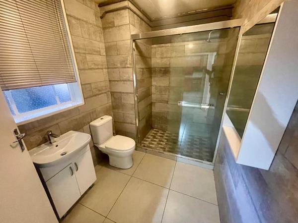 The bathroom offers practicality with a shower, toilet, and basin for added convenience.
