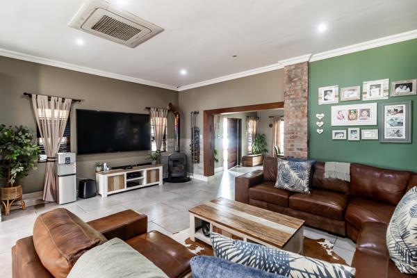- Separate, fully equipped entertainment area with built-in braai, fireplace as well as pizza oven. Ample cupboard space with enough room for another dining-room table and couches.