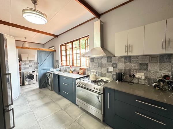 The home features three well-sized bedrooms, including a main en-suite, plus a versatile fourth bedroom with kitchenette and bathroom, ideal as a flatlet, home office, or staff accommodation. Additional features include a borehole, three bathrooms, and two guest toilets.