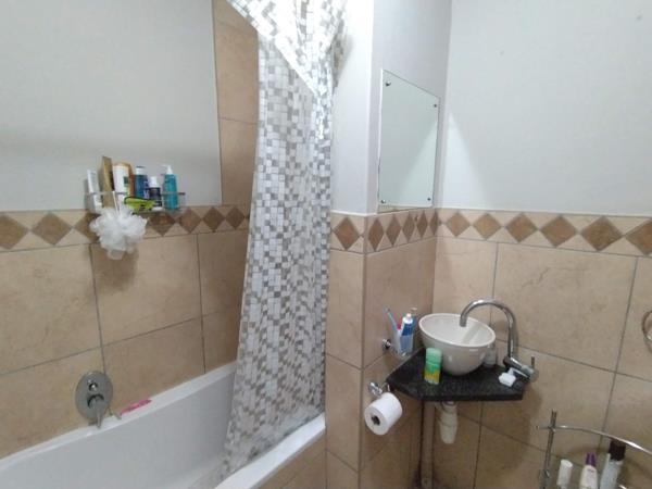 The whole unit is tiled, there''s a 3 door built in cupboard and double wooden doors open onto the garden which is maintained by the complex.
