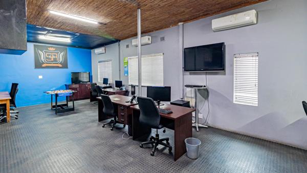 House 3: A reception, 2 toilets, fixed blinds, kitchenette, braai area, 2 open offices and a domestic quarters.