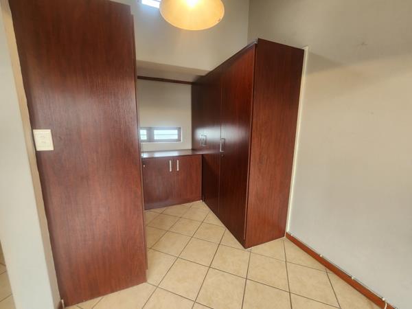 The upper level offers a spacious bedroom which also opens onto a balcony. There is a full en-suite bathroom, built in cupboards and ample space for a study area.