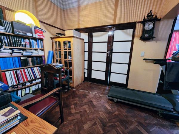 The main house features three spacious bedrooms, all with built-in cupboards. The three bathrooms include a master en-suite with a luxurious corner bath and shower, and a second bathroom with a bath, the modern third bathroom with bath and shower. The homes living spaces are designed for comfort and flow, with a large kitchen, a separate dining room, and a spacious lounge that includes air conditioning. With five air conditioners throughout the house, comfort is guaranteed year-round. An additional study area offers a quiet retreat for work or hobbies. A beautiful secret lies beneath the carpets: original parquet flooring, just waiting to be restored.
