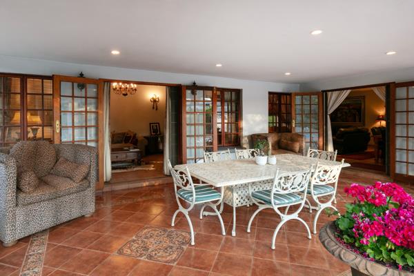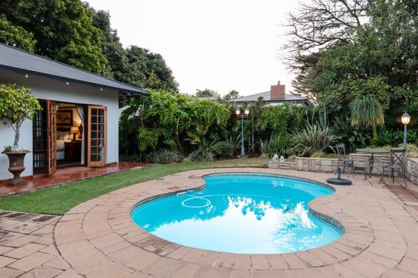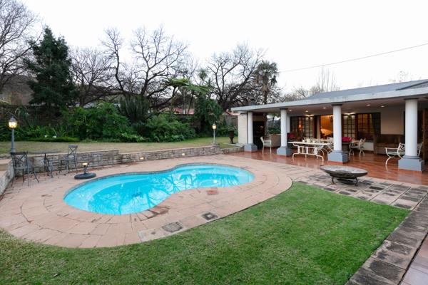 Step inside and experience a seamless flow from the open-plan living and dining areas onto a spacious patio, perfect for entertaining or simply unwinding while overlooking a sparkling pool and a beautifully manicured garden.
