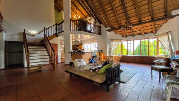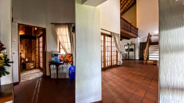 Welcome to this stunning property nestled in the heart of Waverley, Pretoria. This modern double-story home boasts a charming thatched roof and exudes a cozy bushveld feel, providing an inviting atmosphere for families and guests alike.