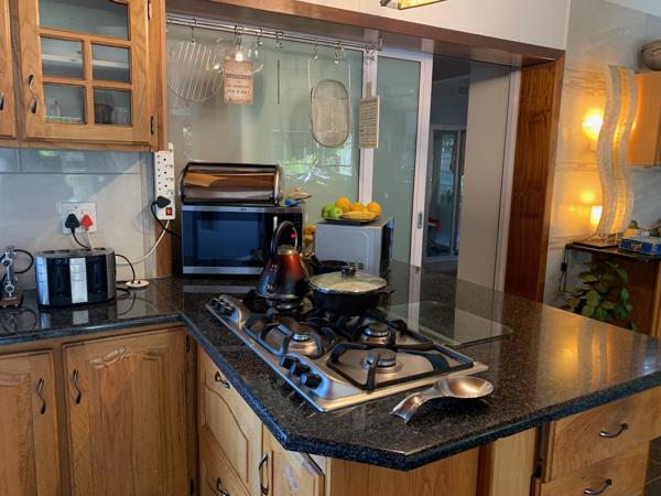 The accommodation includes three spacious, north-facing bedrooms filled with natural light, and a fourth east-facing bedroom with its own private entrance and en-suiteideal for use as a guest suite, teen retreat, or potential income-generating flatlet. The master suite features a full en-suite bathroom, while the guest bedrooms share a well-appointed bathroom and a separate guest toilet. Built-in cupboards, air conditioning, and ceiling fans add to the comfort of these serene sleeping spaces.