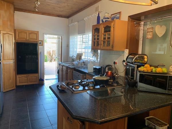 Outdoor living is where this property truly shines. A lush, established garden surrounds the home, creating a tranquil oasis complete with mature trees and partial irrigation. The sparkling swimming pool with a water feature promises endless summer fun, while the entertainers lapawith its built-in braai and barsets the perfect scene for weekend get-togethers and family celebrations.