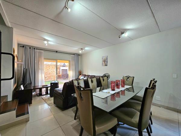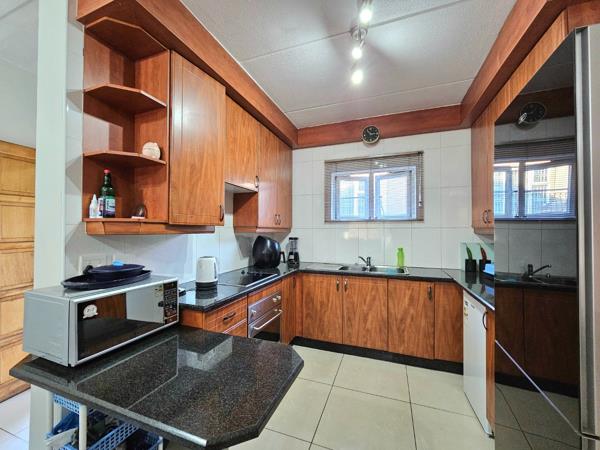 This charming two-bedroom townhouse offers a comfortable and welcoming living space. The spacious open-plan living and dining area flows seamlessly into the modern open-plan kitchen, allowing you to remain part of the conversation while preparing meals. A sliding door from the living area opens onto a covered entertainment patio with a small garden and built-in braai, perfect for hosting friends and family.
