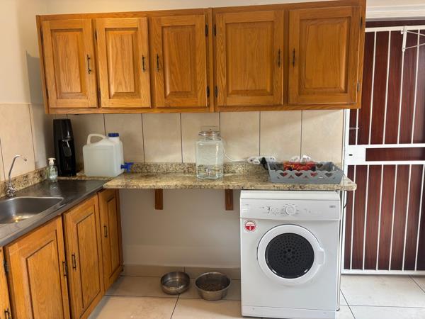 The modern kitchen is well-equipped with granite countertops, a gas stove and oven, ample cupboard space, a pantry, and a separate scullery for added convenience.