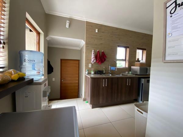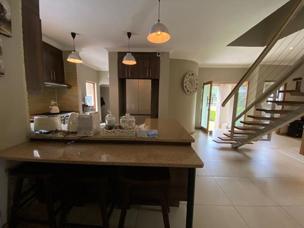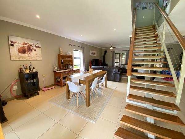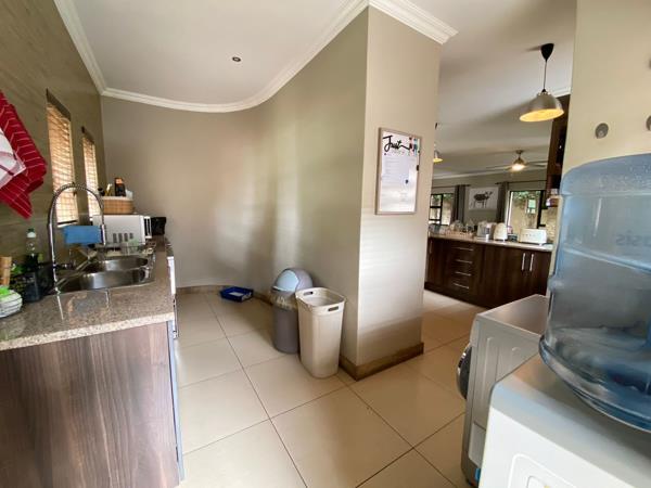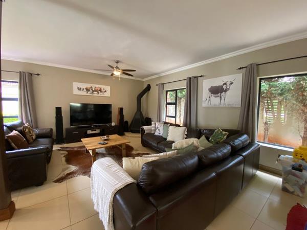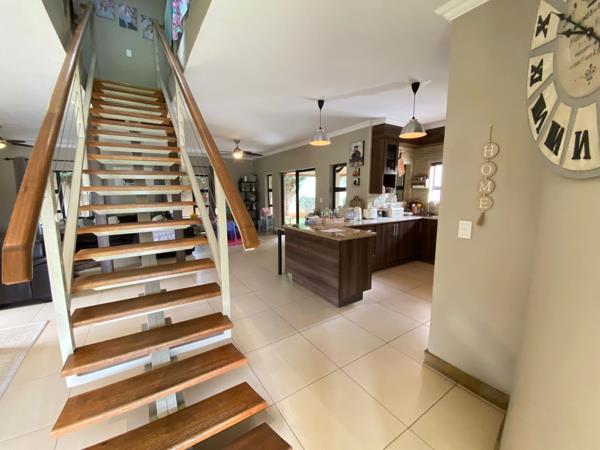 The home offers three spacious bedrooms with ample built-in cupboards and four modern, well-fitted bathrooms a main en-suite, two additional bathrooms servicing the bedrooms, and a fourth bathroom conveniently located outside.