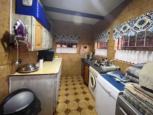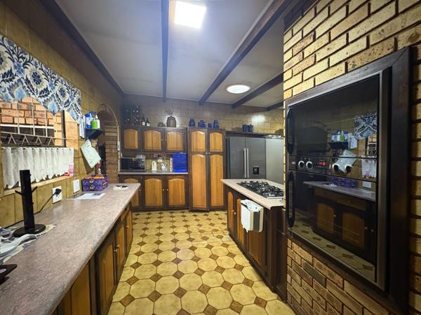 Inside, you are greeted by a welcoming dining room that flows seamlessly into the kitchen on one side and the lounge on the other. The kitchen boasts an eye-level double oven, a five-plate gas stove, spacious cupboards though slightly dated, a large pantry, and a sculleryoffering functionality and plenty of storage. From the kitchen, you enter the TV room, which opens to the backyard where a swimming pool and a Lapa create the perfect retreat.