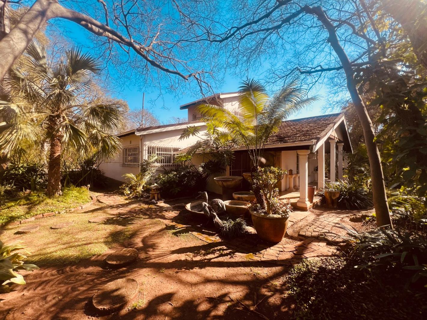 Step outside to enjoy a beautifully maintained garden irrigated by a powerful borehole, a large swimming pool, and plenty of space for entertaining or relaxing outdoors.