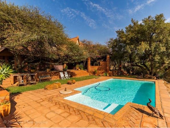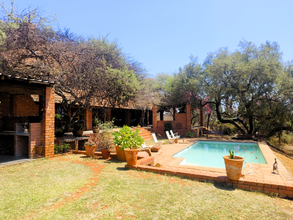 This expansive bush lodge offers an exceptional blend of modern luxury and serene nature, nestled in a vast estate with panoramic views of the African wilderness. The property boasts 9 bedrooms and 6.5 bathrooms, making it perfect for those seeking a tranquil retreat with ample space. Built in 1997, the estate also features a pool, fire pit/boma, and multiple outdoor entertainment areas.