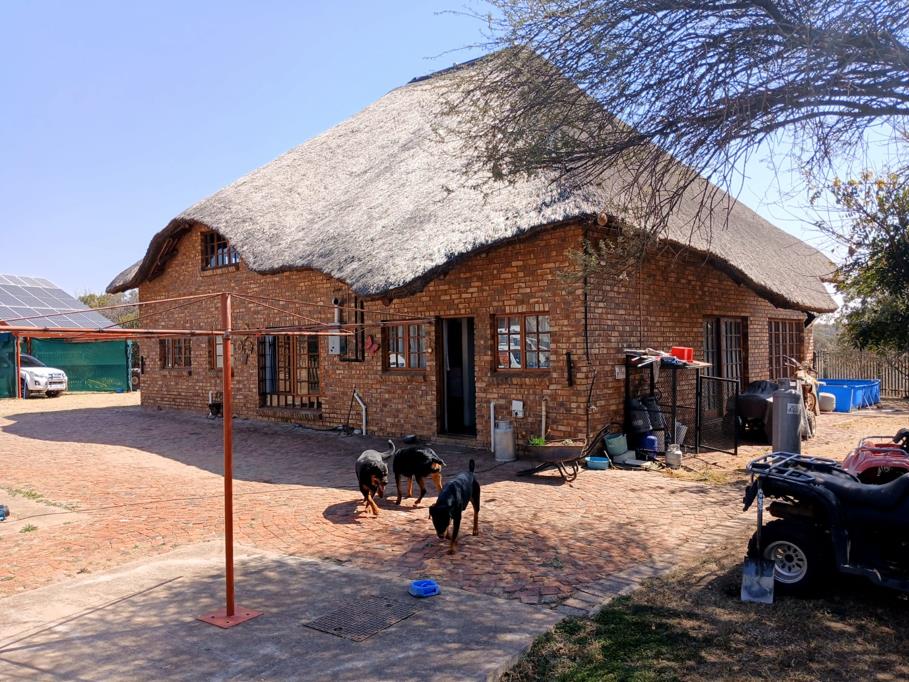 Escape to peace and privacy on this secure 8.5-hectare smallholding, offering a fully off-grid lifestyle with modern comforts. The property features a charming 3-bedroom thatched farmhouse with an open-plan solid wood kitchen, spacious living and dining areas, 2 bathrooms (one en-suite), laundry with scullery, and an impressive 80m2 loft. Designed for practical living, it runs entirely off a powerful solar system (15 panels, 8kVA inverter, 4 batteries), with water supplied from 2 boreholes (1 equipped), a 5000L elevated JoJo tank, and a 3-phase borehole pump.
