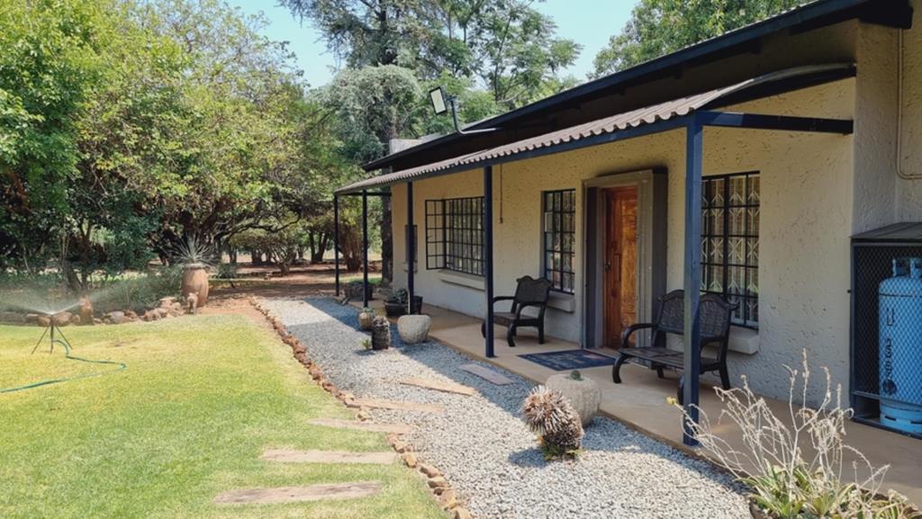 The farmhouse dated from the 1980s which was recently neatly renovated and offers spacious and comfortable accommodation. The interior finishes are of good quality and is tasteful. The house has concrete formed tiles and gypsum ceilings. The kitchen is fitted with wooden cupboards. The building consists of spacious rooms like the open plan kitchen and dining room area, the spacious family room/entertainment room. There is a lounge with a fire place. The house has 3 bedrooms with build-in cupboards. The main bedroom has an en-suite bathroom and the other bedrooms share a bathroom.