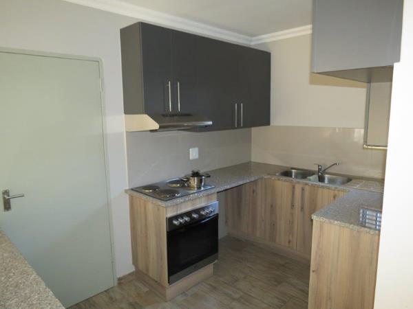 Upon entering, you are greeted by an open plan layout combining the kitchen, lounge, and dining area. The kitchen is equipped with built-in cupboards, a pantry, granite countertops, and three connections for a dishwasher or washing machine. The layout is designed to cater to modern living with ease and functionality.