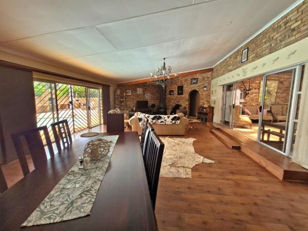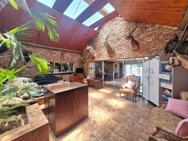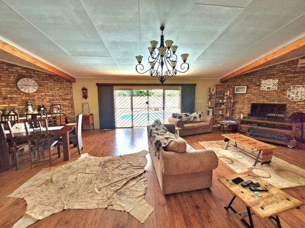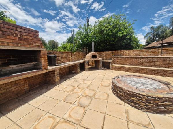 This lovely family home consists of 3 bedrooms, 3 bathrooms - all en suite, open plan living areas, 2 entertainment areas with a lapa, inside baai and outside braai, jacuzzi, fireplace, boma, pizza oven and a sparkling pool. Large double garage (automated) and double carport, with an extra double carport for a caravan, with separate entrance. The house also offers a separated an outside toilet and a large wendy house. Aircons, a gas hob, borehole, irrigation system in the garden, CCTV, alarm, and electric fencing is a huge bonus. Modern and move-in-and-stay home with lots of extras and definite for the entertainer. Beautiful garden and modern finishes in the house. So much more than a house, this is a home! Come look and see, feel for yourself!