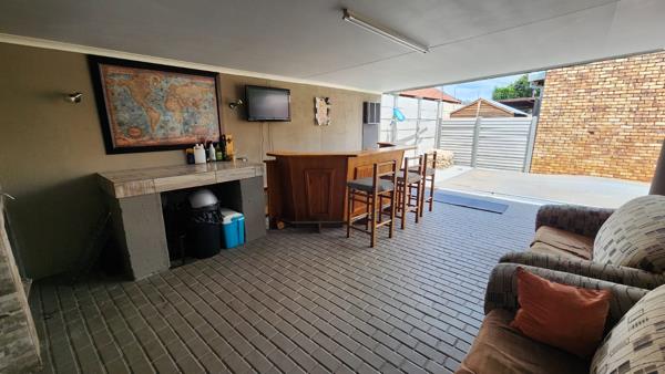 Impressive outside features such as underroof entertainment area with ceiling, build in braai situated next to pool with canvas cover. Carports for 4 cars, and a neat easy maintainable garden. Motorized access gate