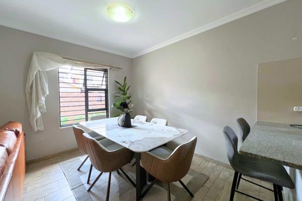 Outside, a double, remote-controlled garage provides secure parking and direct convenience. The home opens to a lovely patio with a built-in braai, leading to a private garden area perfect for relaxed weekends and effortless entertaining.
