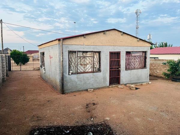 A two bedroom house available for sale in Hammanskraal Kanana. Featuring 2 bedrooms, dining room and kitchen. Outside guest toilet. Security gate. Its in Kanana west proper