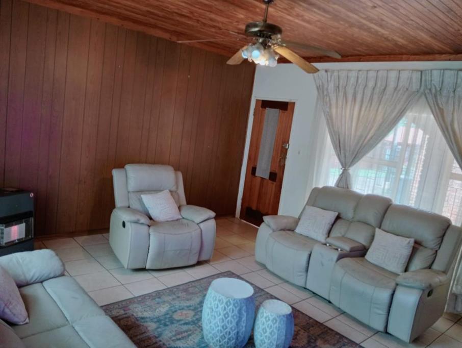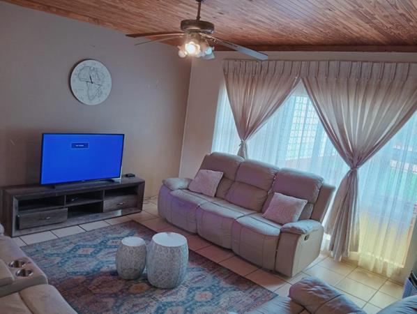 Living area flows into a covered, enclosed entertainment space ideal for weekend braais, birthday parties, or a peaceful retreat