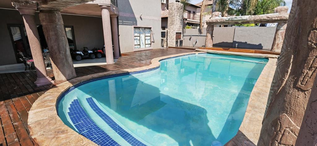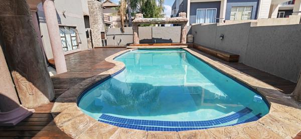 Outside the is a spacious patio with build in braai, large pool (With Cover) and outside toilet perfect for entertaining .