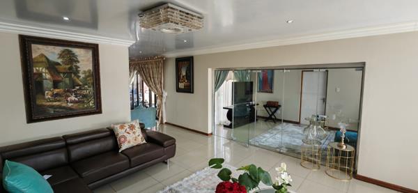 There are 5 Bedrooms in the house and 4 bathrooms. Downstairs is 1 bedroom with En-suite. Upstairs is 4 Bedrooms and 3 Bathrooms. The Main Bedroom has a full en-suite, walk in closet and even space for own lounge.