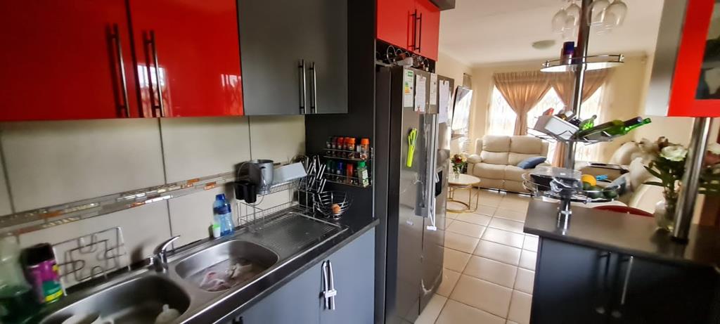 Extras in this home include a solar geyser, a motorized gate, a fully paved yard, a double carport, a wendy house, a prepaid electricity meter, an alarm system with sensor beams all around, and CCTV cameras for additional peace of mind.