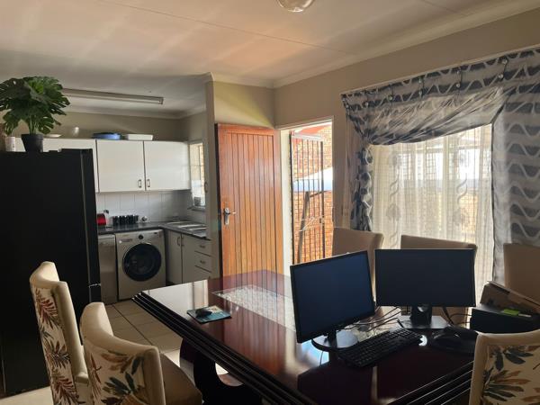We are proud to present this property which offers two bedrooms, full bathroom Shower and bath tub Kitchen with modern cupboards, Dining area, Lounge.