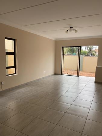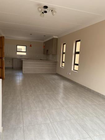 Modern duplex offers open plan kitchen with spacious lounge and guest loo downstairs. Good sized 3 bedrooms with built in cupboards and 2 full bathrooms are upstairs .Duplex has private garden, garage and covered carport . Brand new property includes solar system and solar geyser. Water and electricity are prepaid.