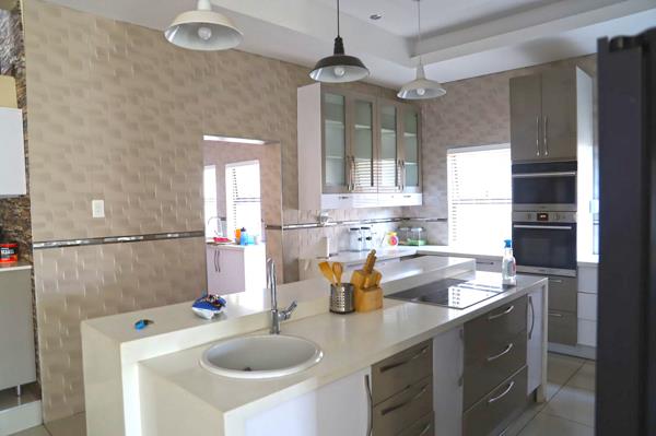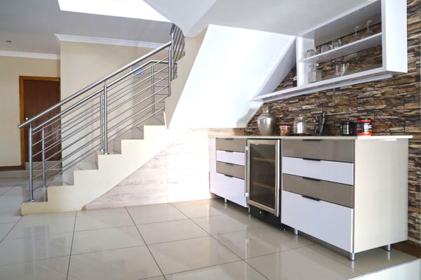 Elegant Living & Dining Areas Designed for both relaxation and entertainment, the spacious lounge and dining room flow seamlessly onto a covered patio with a built-in braai area perfect for family gatherings and social events.