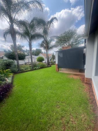 Secure and serene townhouse in a gated estate, perfect for a small family. Two spacious bedrooms, two bathrooms, and an en-suite main bedroom with aircon. Immaculately maintained garden, unusually large for a townhouse. Double garage with automatic door. Enjoy peace of mind in this extremely safe and well-maintained complex.