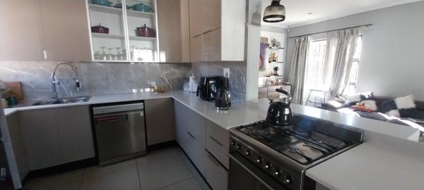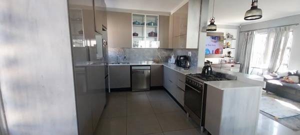 The home features a spacious open-plan layout combining the kitchen, dining, and lounge areasperfect for modern living. The kitchen is stylishly finished with contemporary touches and comes equipped with a gas stove, ideal for energy-efficient cooking.