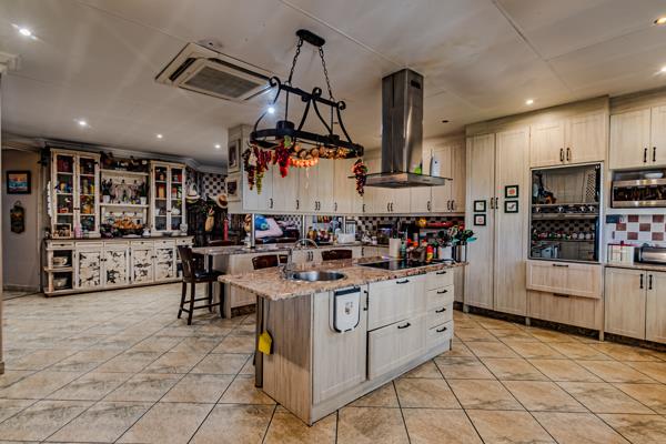 Welcome to a rare opportunity to own a truly exceptional estate a sanctuary of space, style, and versatility. This expansive property boasts five generously sized bedrooms, each with its own en-suite bathroom, ensuring privacy and comfort for the entire family. Designed with flow and functionality in mind, the home features an elegant open-plan lounge and formal dining area, a fully fitted kitchen with a separate scullery, a dedicated laundry room, sunroom, storeroom, and an entertainment lounge ideal for hosting in style. A guest cloakroom adds further convenience.