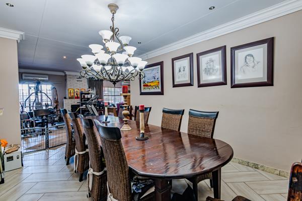 For those with a passion for space and practicality, the property delivers six double garages, a workshop, and four staff quarters. Enjoy the tranquil charm of the outdoors with a sparkling swimming pool, koi pond, and the convenience of two boreholes to support the lush landscape.